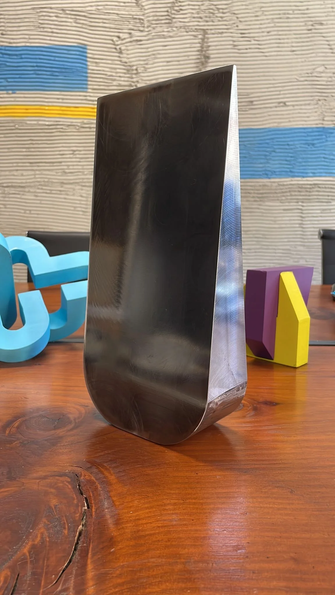 Questo specchio da tavolo nasce dalla volontá di indagare il tema dei pesi visivi che forma e finitura sono in grado di generare. L’ acciaio, cuore della produzione del brand, è mostrato nei suoi due stadi estremi: massiccio, pesante e inalterato nella porzione inferiore, lucidato a specchio ed evanescente in quella superiore. Pur nella continuità formale del monolite, che si sviluppa con un progressivo assottigliamento del volume, racconta dunque un contrasto percettivo che ne svela la funzione e caratterizza il linguaggio.