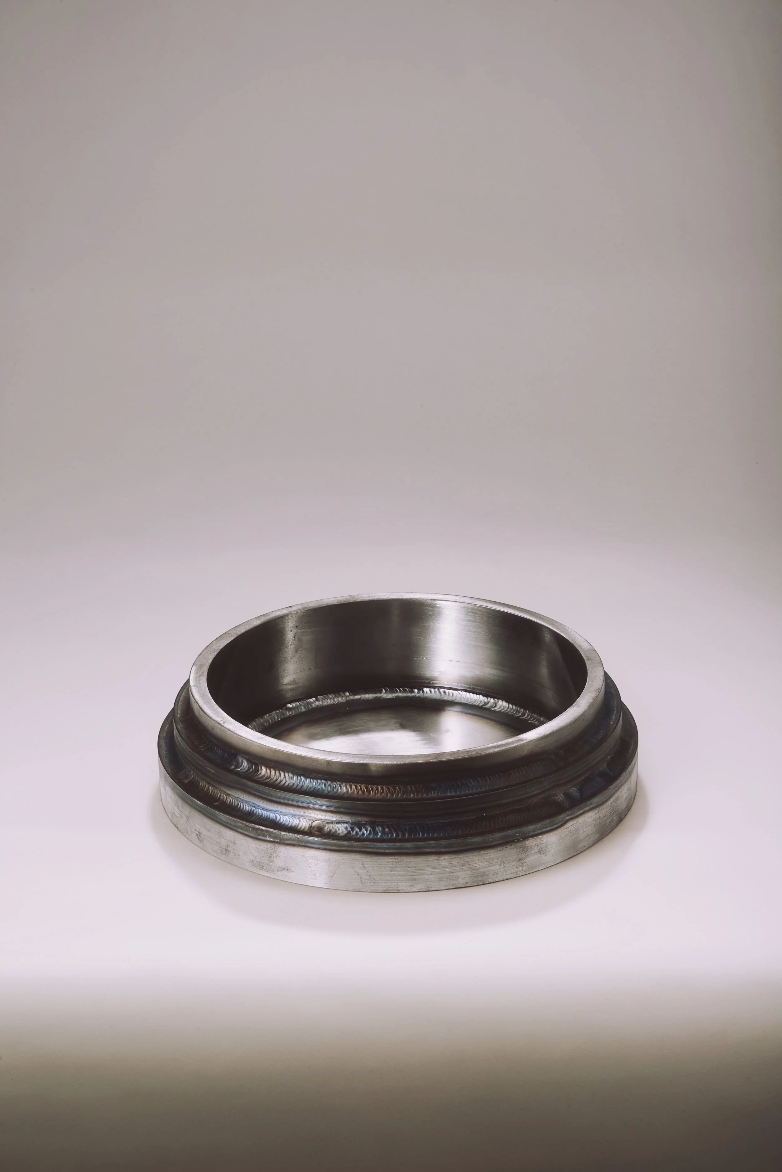 Tig esprime la robustezza delle lavorazioni metallurgiche, abbracciando l'artigianalità in modo distintivo. A differenza delle convenzioni, esibisce la saldatura in modo crudo, trasformandola nel tratto estetico dominante. Il complesso processo di saldatura è il frutto di molteplici sperimentazioni, con precise regolazioni di spessori metallici e temperature di fusione per ottenere un affascinante effetto arcobaleno. Tig non è solo un’oggetto scultoreo, ma una celebrazione delle capacità artigianali che converte la saldatura da mero atto tecnico a caratteristica in cui l'imperfezione diventa l’elemento distintivo